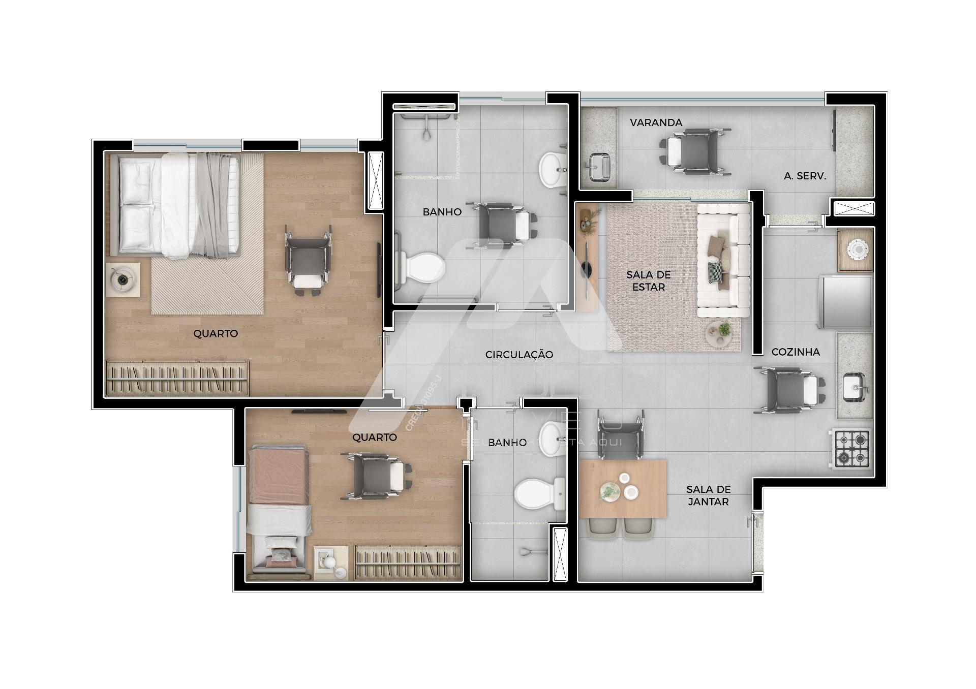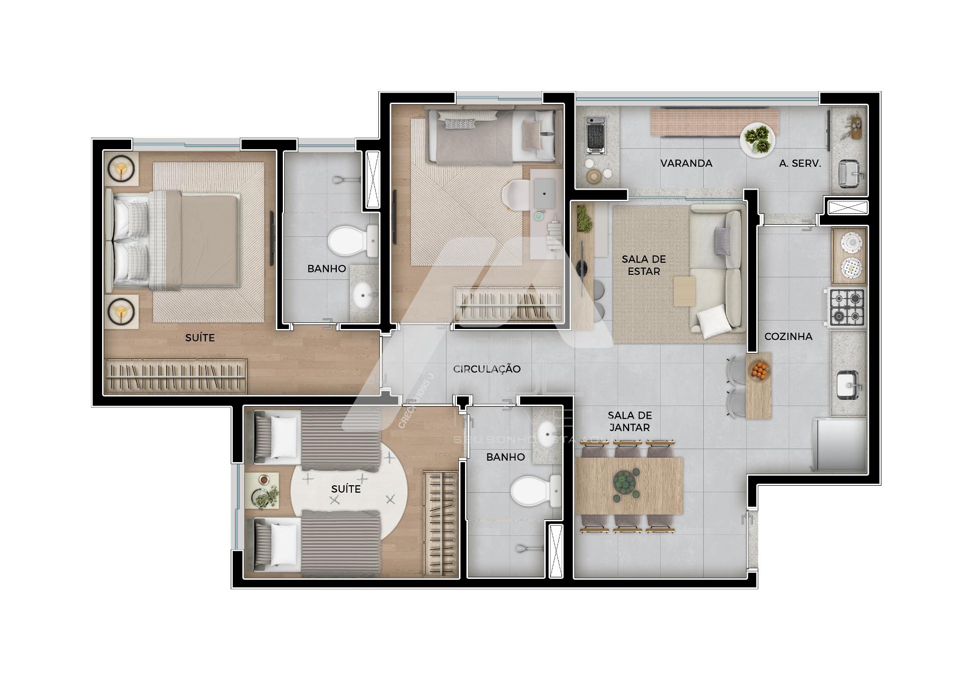 Apartamentos de 2 e 3 dormitórios, com suíte e varanda gourmet.