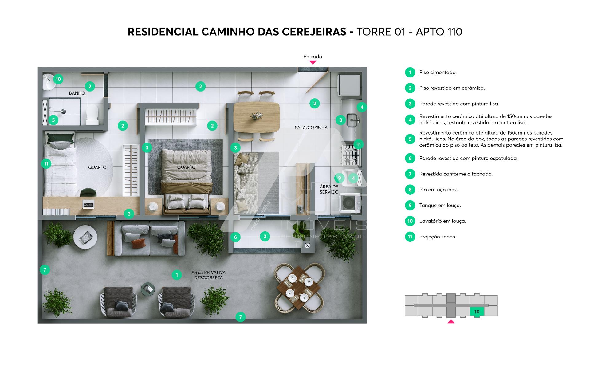 Kids, Gourmet, Churrasqueira, Academia coberta, piscinas, quadra, playground, playbaby, horta, Redário, Praça Boa vindas, Praça da Família, Praça Gourmet)